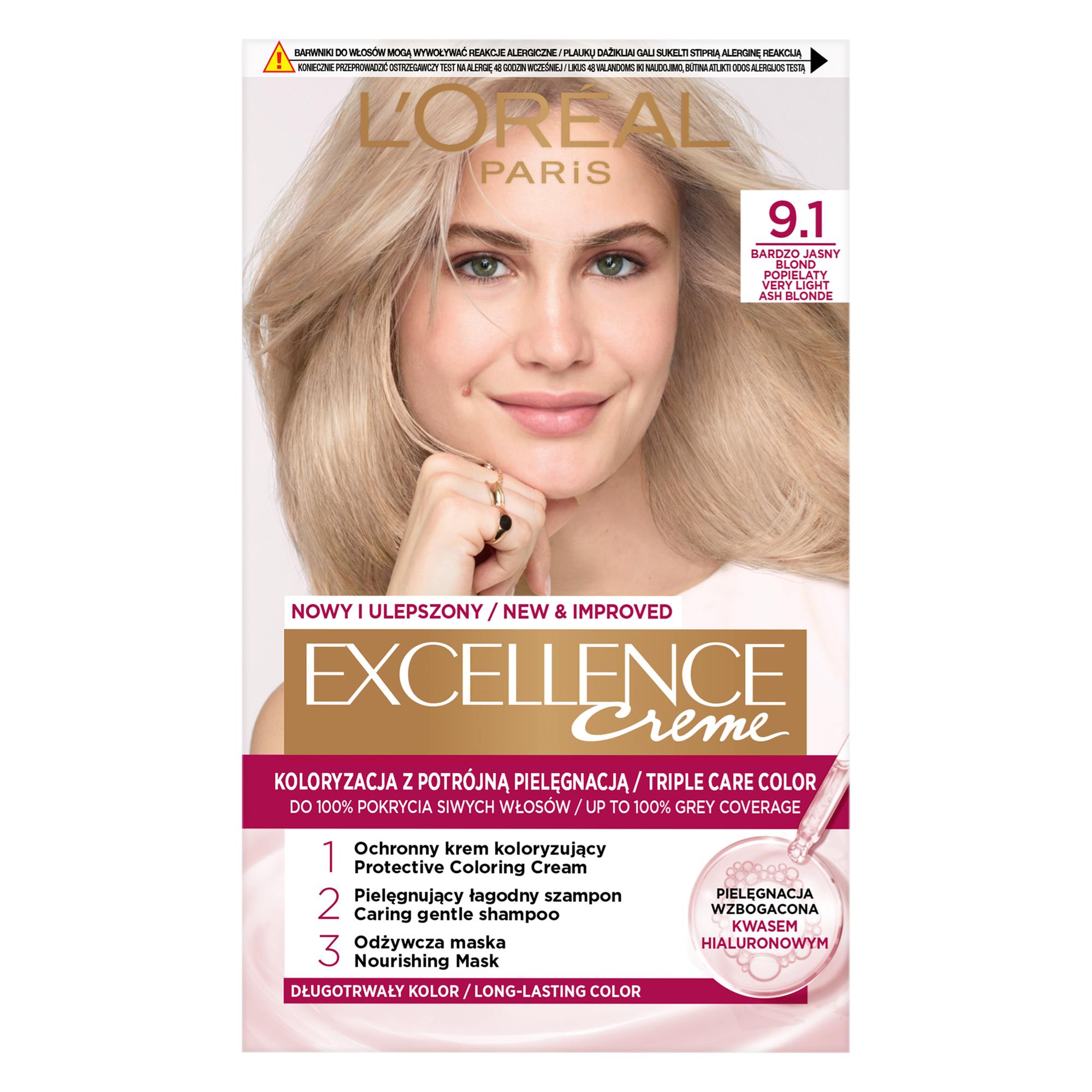 LOREAL EXCELLENCE FARBA KOLORYZUJĄCA 9.1 BARDZO JASNY POPIELATY BLOND