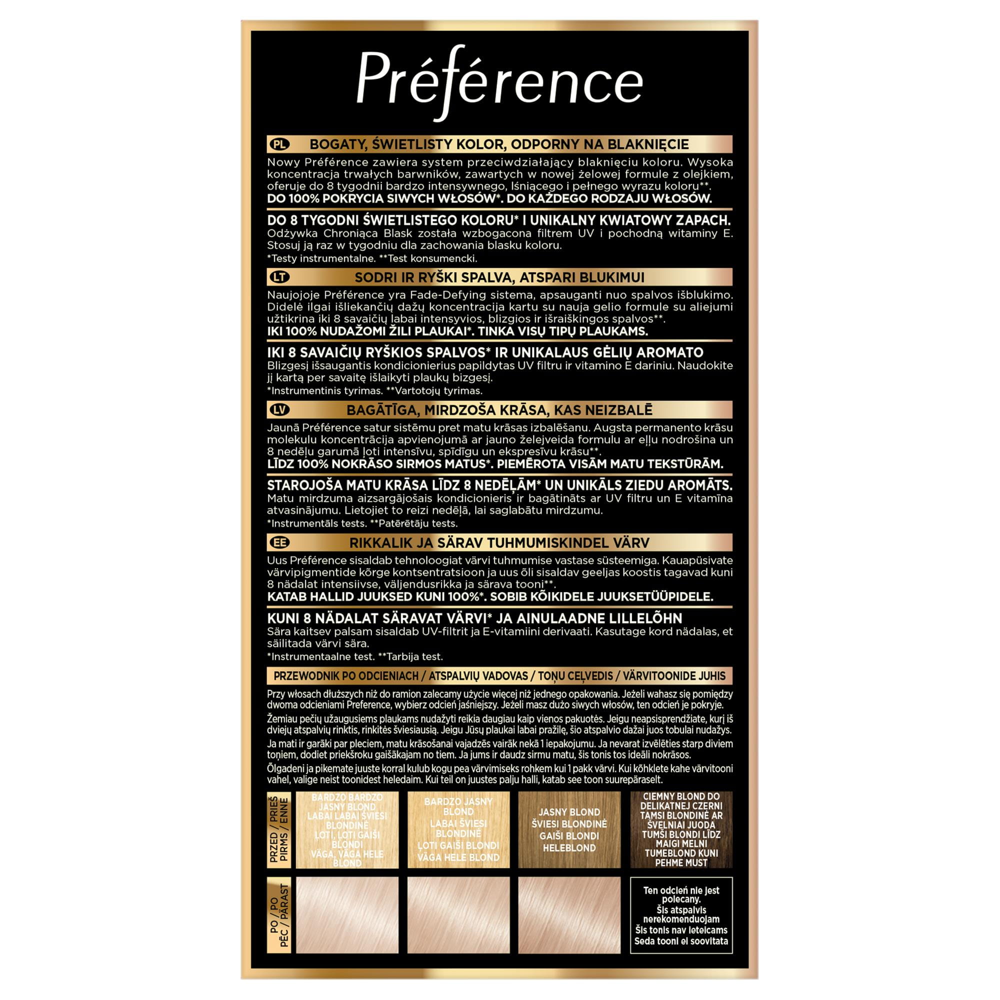 LOREAL FERIA-PREFERENCE FARBA KOLORYZUJĄCA 102 BARDZO JASNY PERŁOWY BLOND