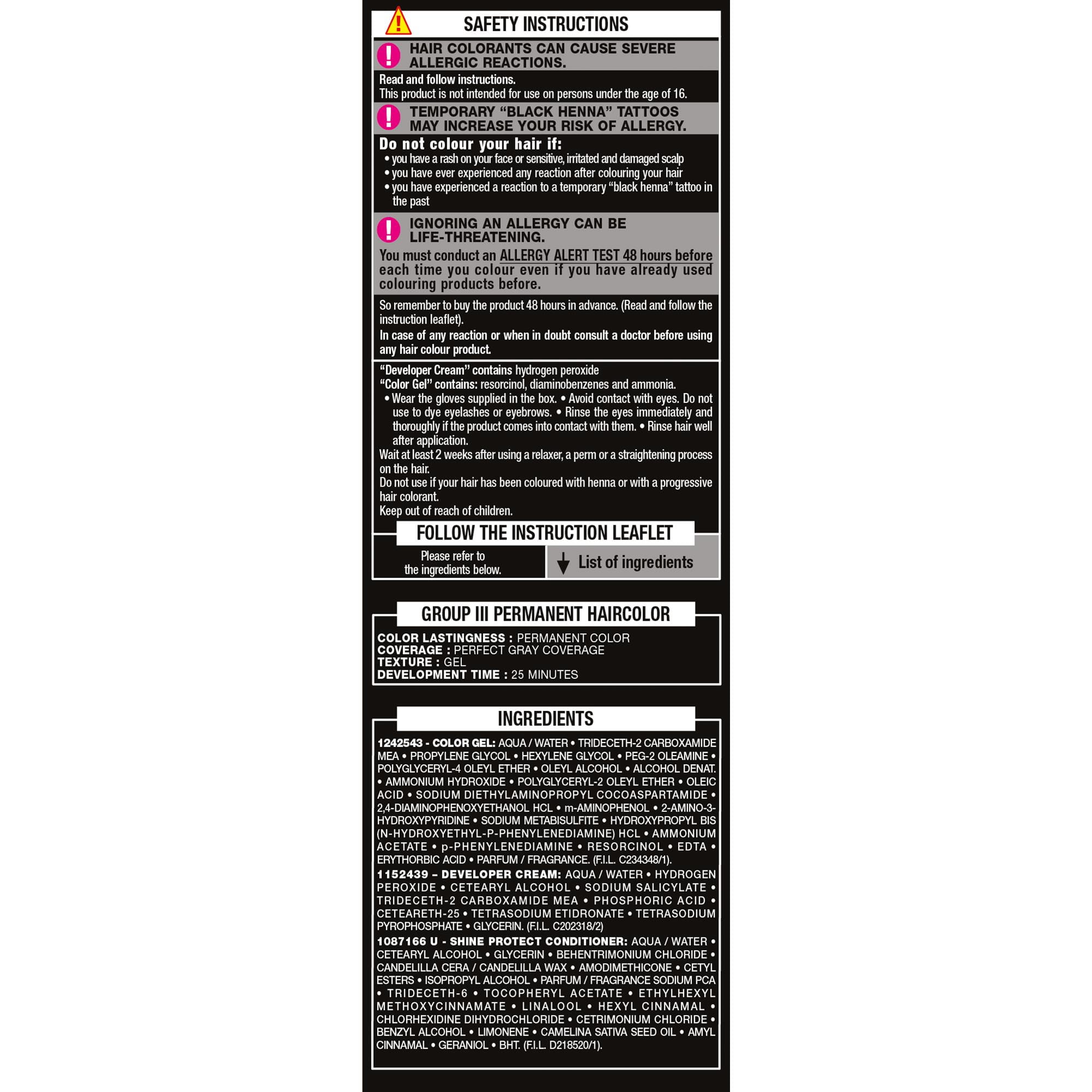 - w opakowaniu znajdują się: żel koloryzujący, krem utleniający, odżywka upiększająca kolor oraz rękawiczki.