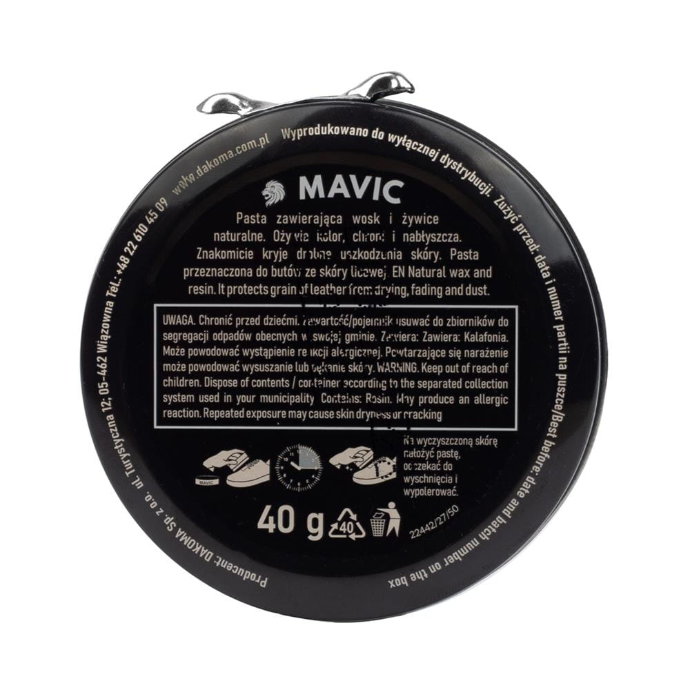 Parametry techniczne MAVIC Naturalny Wosk do Obuwia Skórzanego Czarny 40 g