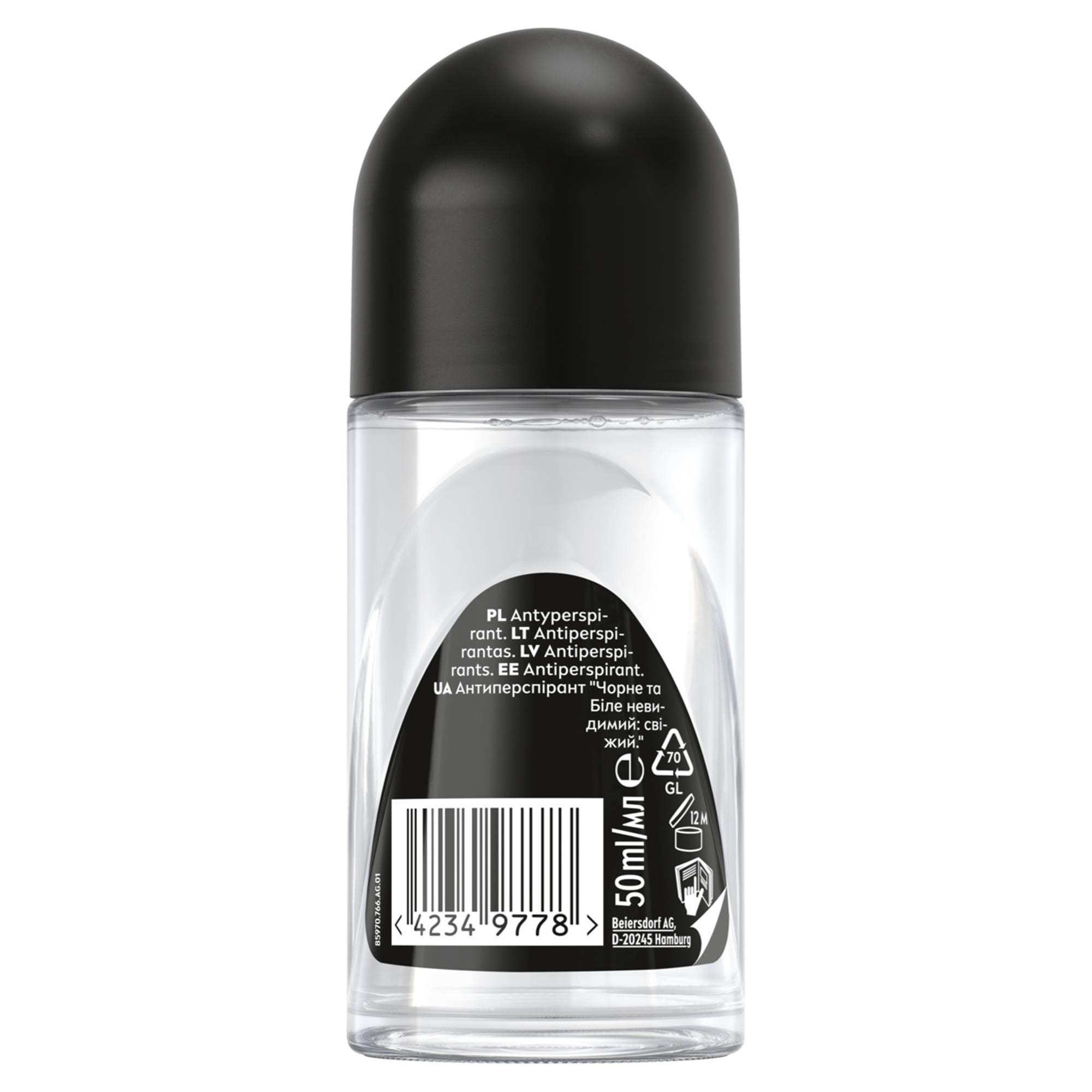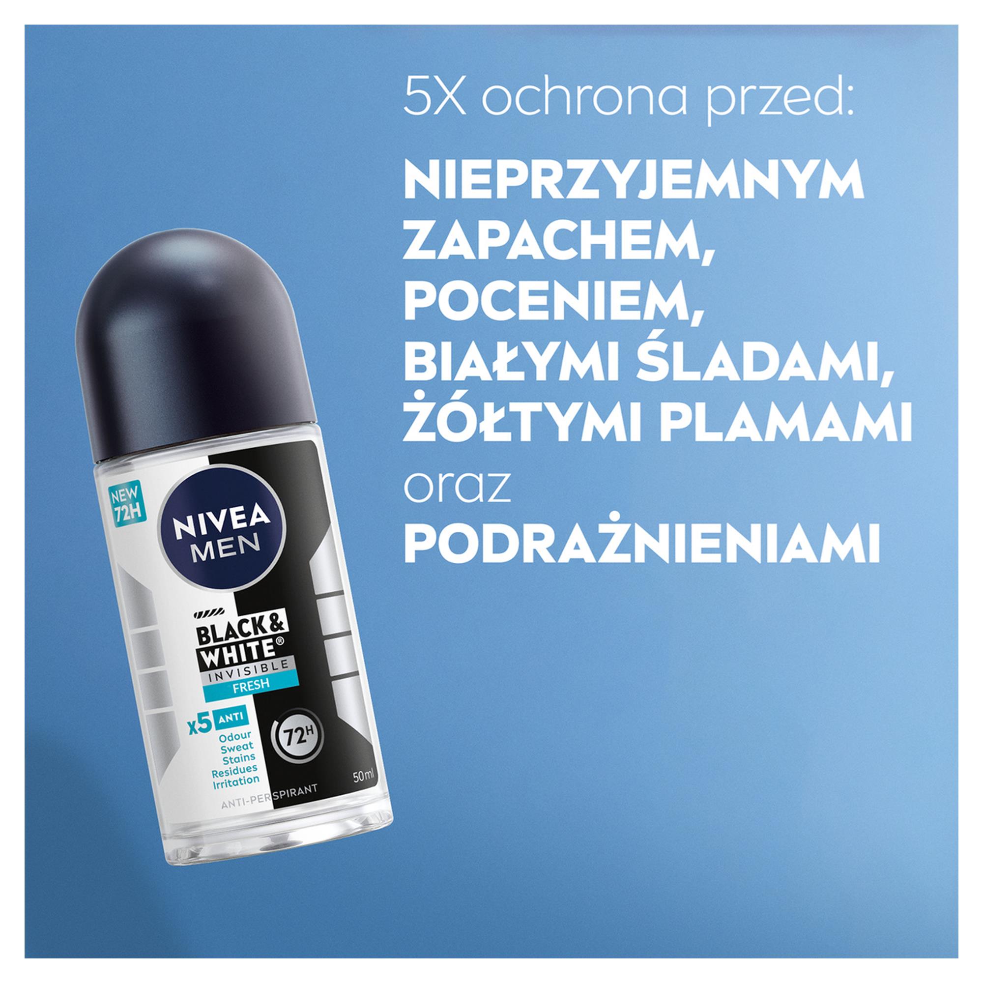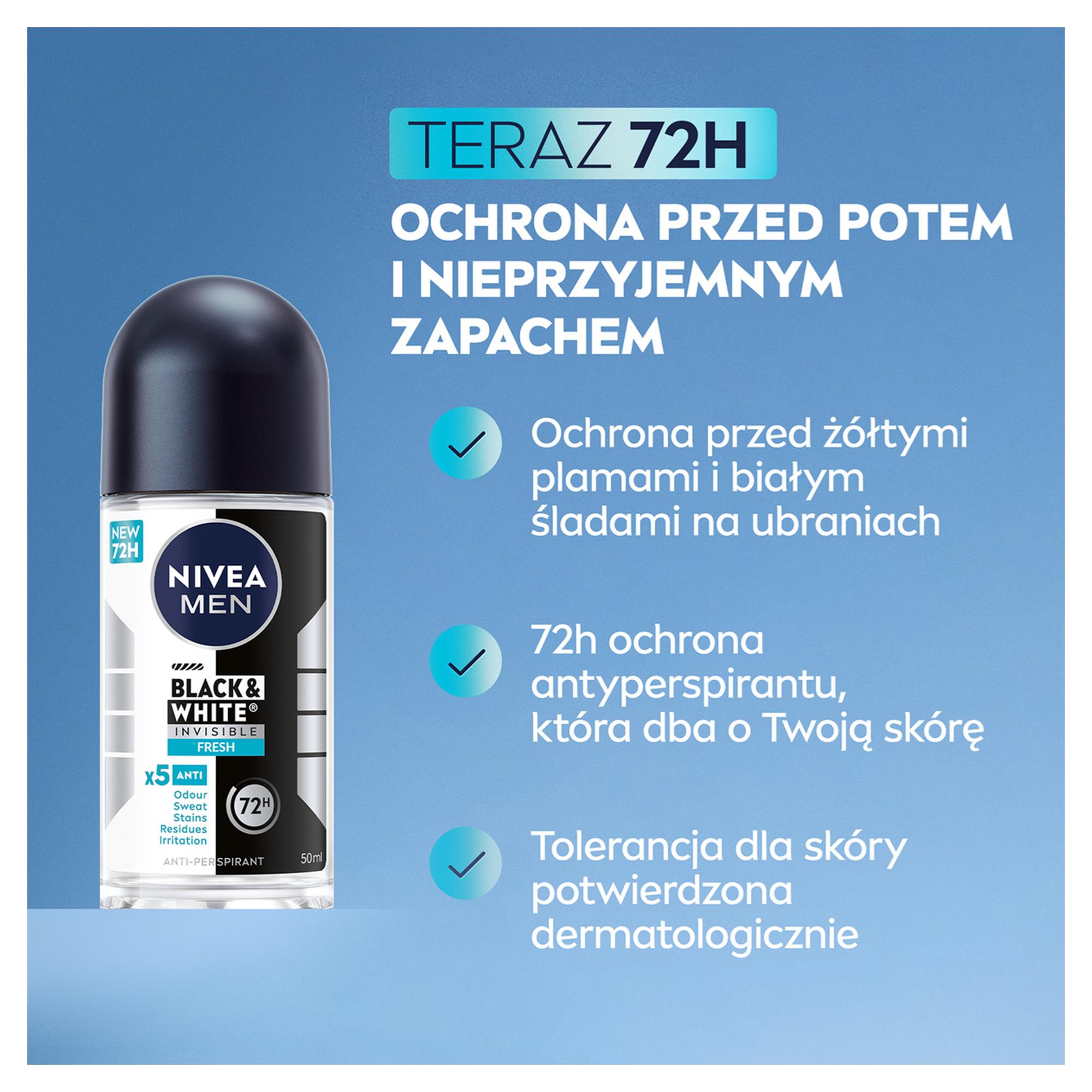 NIVEA DEZODORANT MEN ROLL-ON 50ML BLACK&WHITE INVISIBLE FRESH