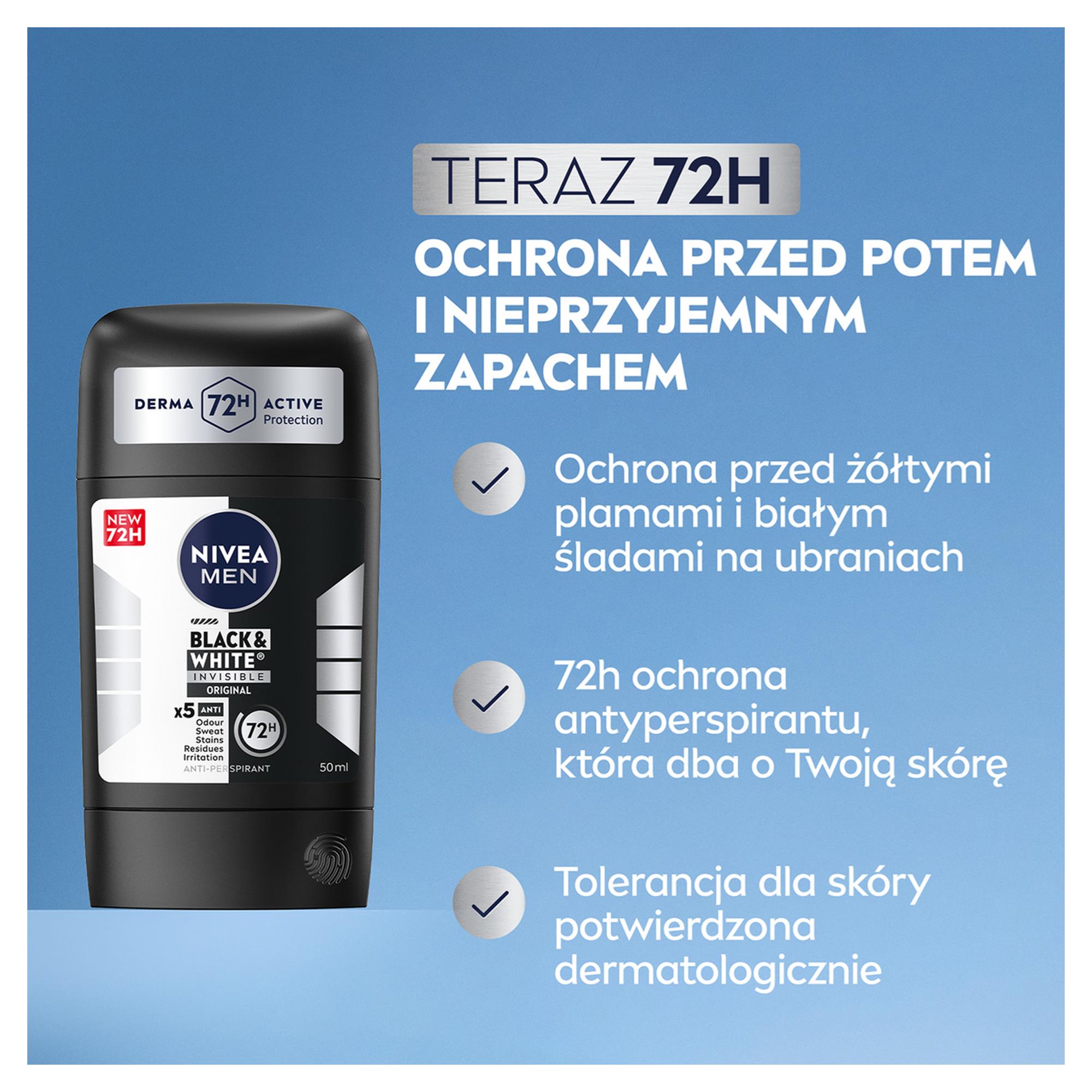 NIVEA DEZODORANT MEN STICK 50ML 48H BLACK&WHITE INVISIBLE ORIGINAL