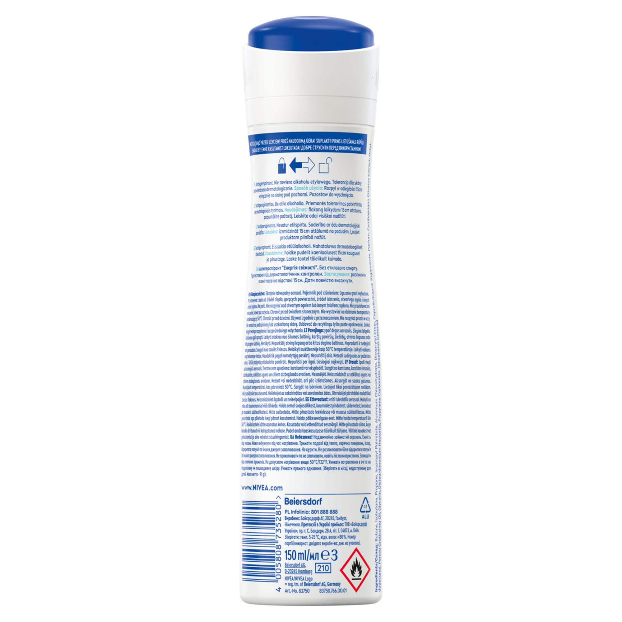 NIVEA DEZODORANT WOMEN SPRAY 150ML FRESH ENERGY