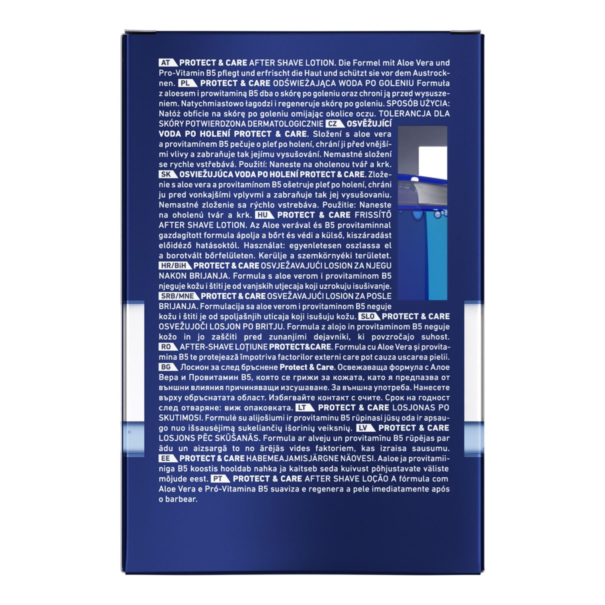 Receptura wody po goleniu Nivea Protect & Care została wzbogacona o takie składniki, jak ekstrakt z aloesu oraz witamina E. Obie substancje znane są w kosmetyce i dermatologii z właściwości kojących i regenerujących skórę. Należy dodać, że lotion po goleniu Nivea Men Protect & Care Refreshing wyróżnia się przyjemnym męskim zapachem, co uprzyjemnia pielęgnację.