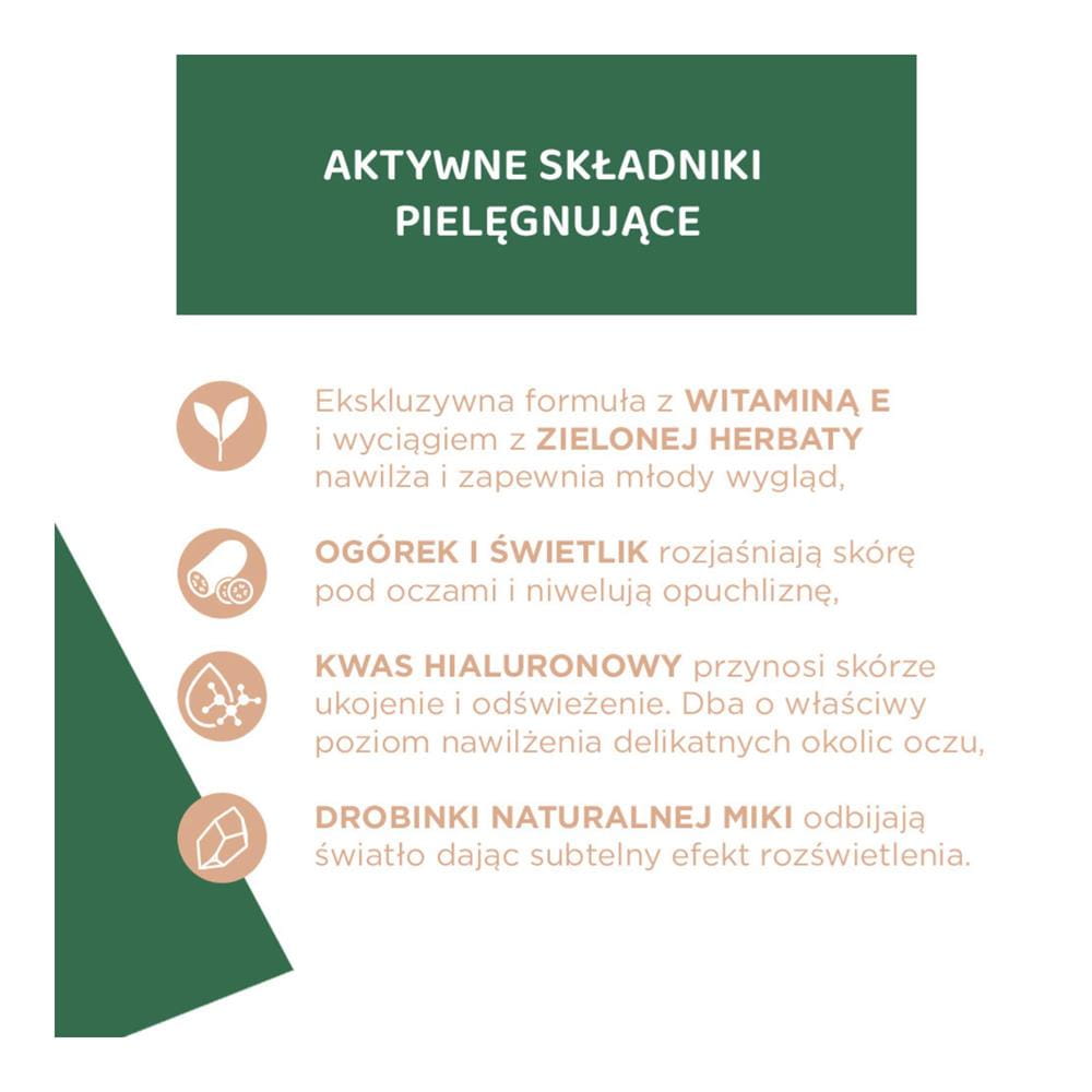 Skuteczne nawilżenie i rozświetlenie delikatnej skóry pod oczami.